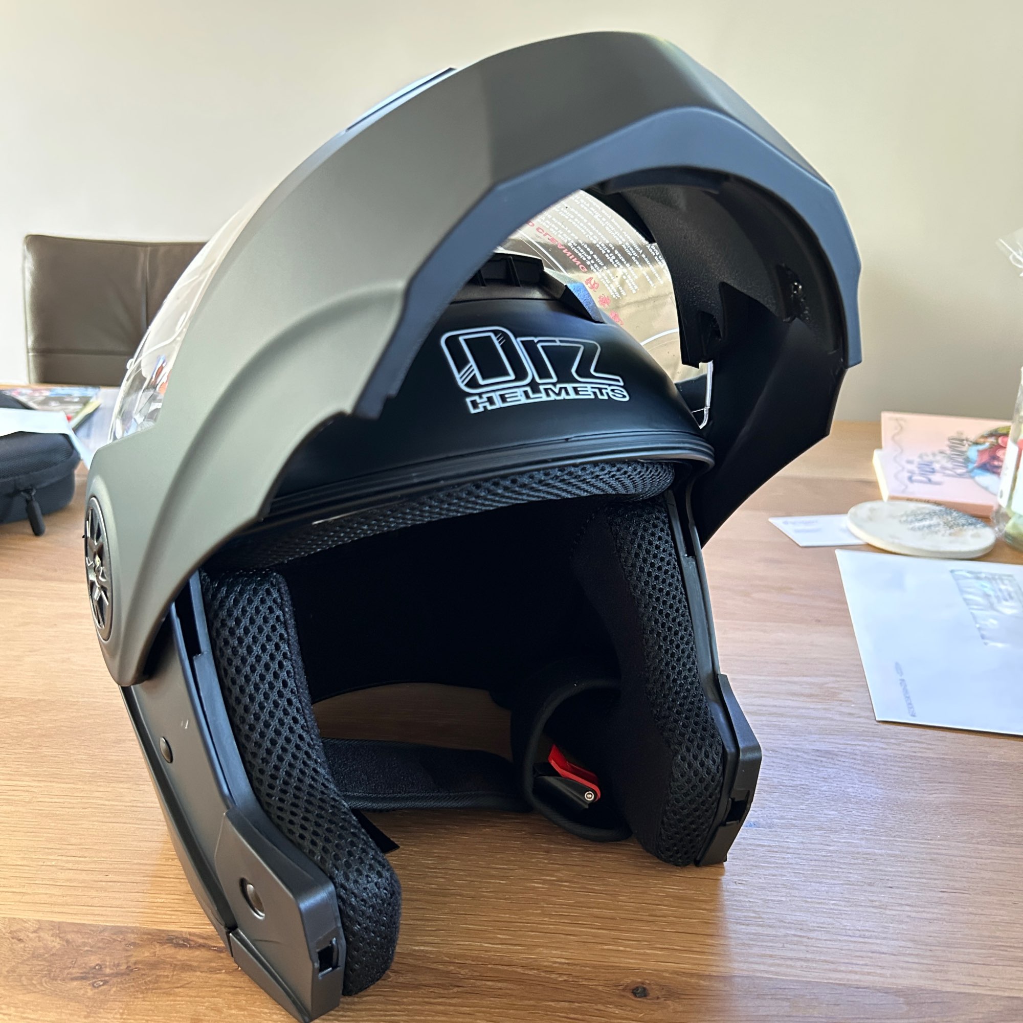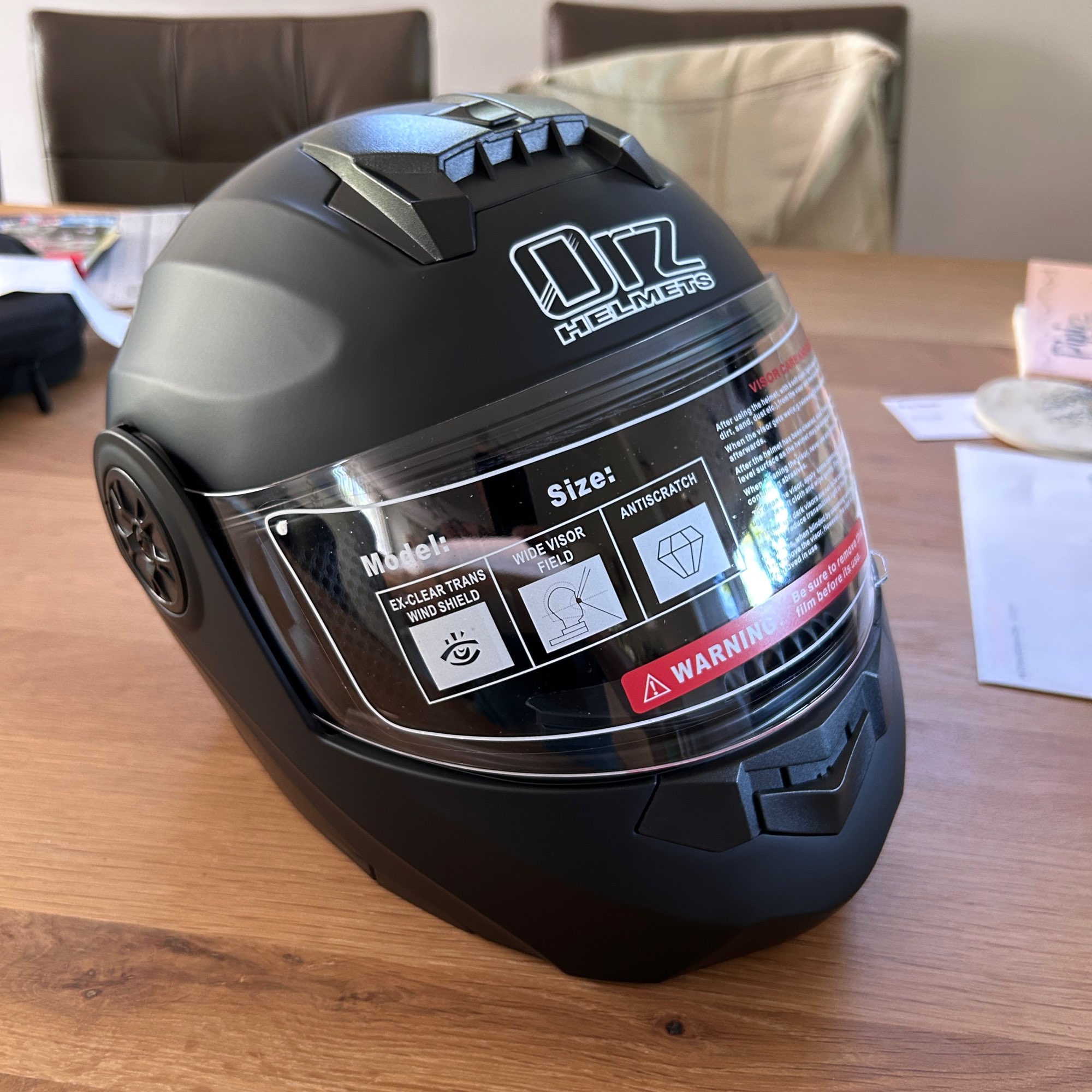 Excelente, muy bien empaquetado, con protecciones en las visores, muy silencioso dentro del casco, desafortunadamente solo tiene una entrada de aire pero aún así vale la pena. Un detalle/aviso: al comprar, pide una o dos tallas más grandes. Yo hice eso y es mucho más cómodo; el otro que compré era demasiado ajustado. Pero si es así, no lo cambiaré por nada. Tengo uno para el trabajo y otro para salir.